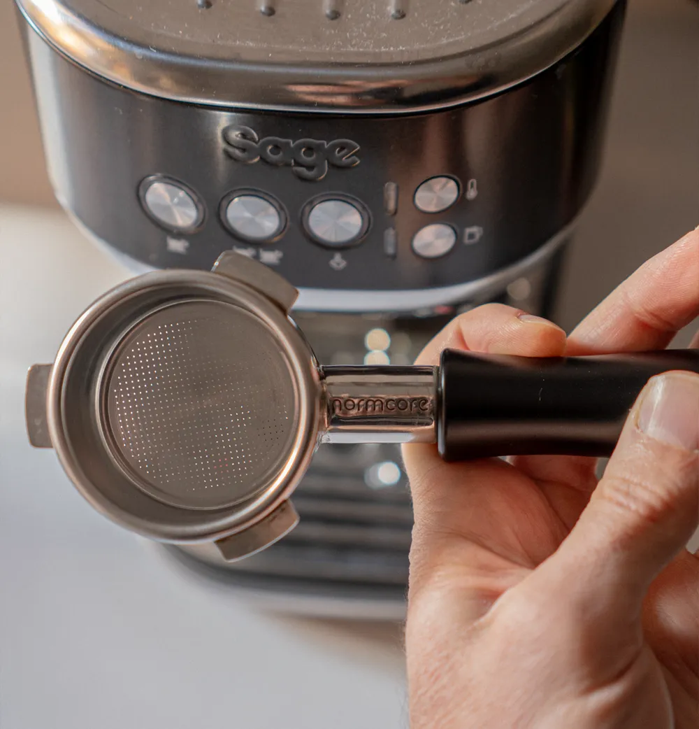 The Normcore portafilter is their most popular accessory and it’s perfect: it’s very good quality, made of 304 stainless steel, with a removable handle and, in addition, it comes with a filter included, of course a non-pressurized filter. It’s available in 58 mm sizes, with variations depending on the type of machine (Gaggia, La Marzocco, Sage or E61 groups), in 54 mm for Sage coffee makers, and in 51 mm, for other coffee makers, such as De’Longhi.